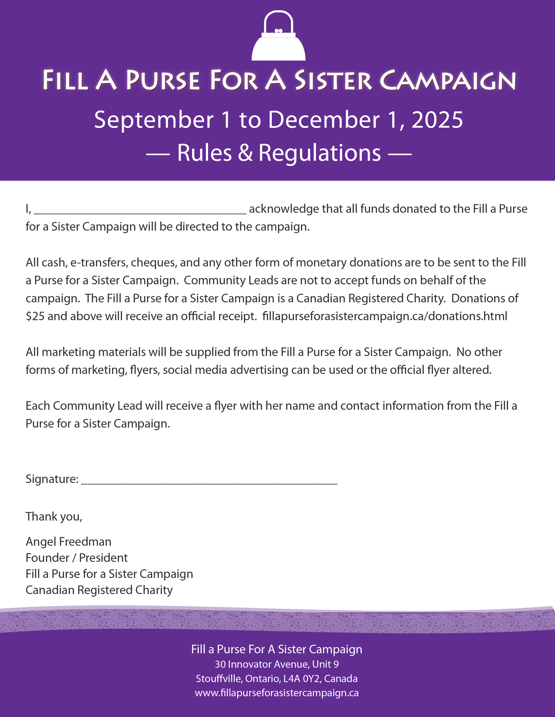 Fill a Purse For a Sister Campaign - Rules & Regulations Form - JPG
